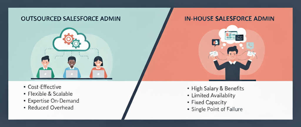 The Problem: Your business runs on Salesforce, but as a growing company, you cannot justify the budget for a dedicated, experienced administrator. You need professional management but are stuck between hiring a junior, inexperienced admin or having no admin at all.